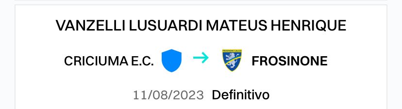 Terminata la telenovela Lusuardi. Il difensore brasiliano è infatti un nuovo calciatore del Frosinone. Manca ancora il comunicato ufficiale del Frosinone calcio ma il suo contratto è già stato depositato in Lega. Ufficiale dunque anche l'arrivo a titolo definitivo di Lusuardi al Frosinone