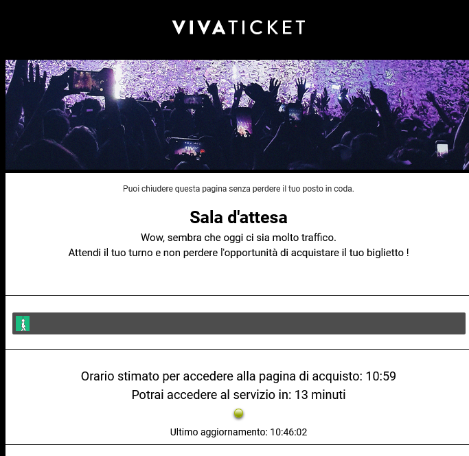 Prosegue la vendita dei tagliandi per assistere a Frosinone-Fiorentina in programma giovedi pomeriggio. Portale Vivaticket preso d'assalto questa mattina dai tifosi giallazzurri, c'è coda da fare (foto 1).