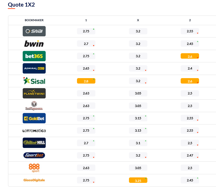 Per la sfida di questa sera tra Bari e Frosinone le agenzie di scommesse prevedono un match equilibrato nel quale gli uomini di Alvini sono leggermente favoriti al successo. Quote infatti sostanzialmente in equilibrio con l'eventuale successo dei galletti pagato in media 2.75, di contro la vittoria del Frosinone si aggira sul 2.55. Segno X che vale 3.15