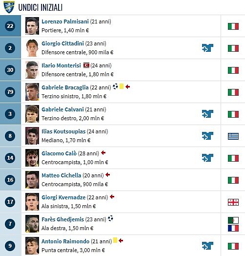 L'immagine rende superflue ulteriori descrizioni: nel capolavoro edificato finora dal sodalizio gialloblu e dal condottiero che ne sta guidando le sorti, l'ulteriore merito risiede nella capacità di aver lanciato e valorizzato talenti con l'età come alleato. Nessuno (con una minimale parentesi da riservare all'Empoli), nel campionato cadetto, ha fatto altrettanto.