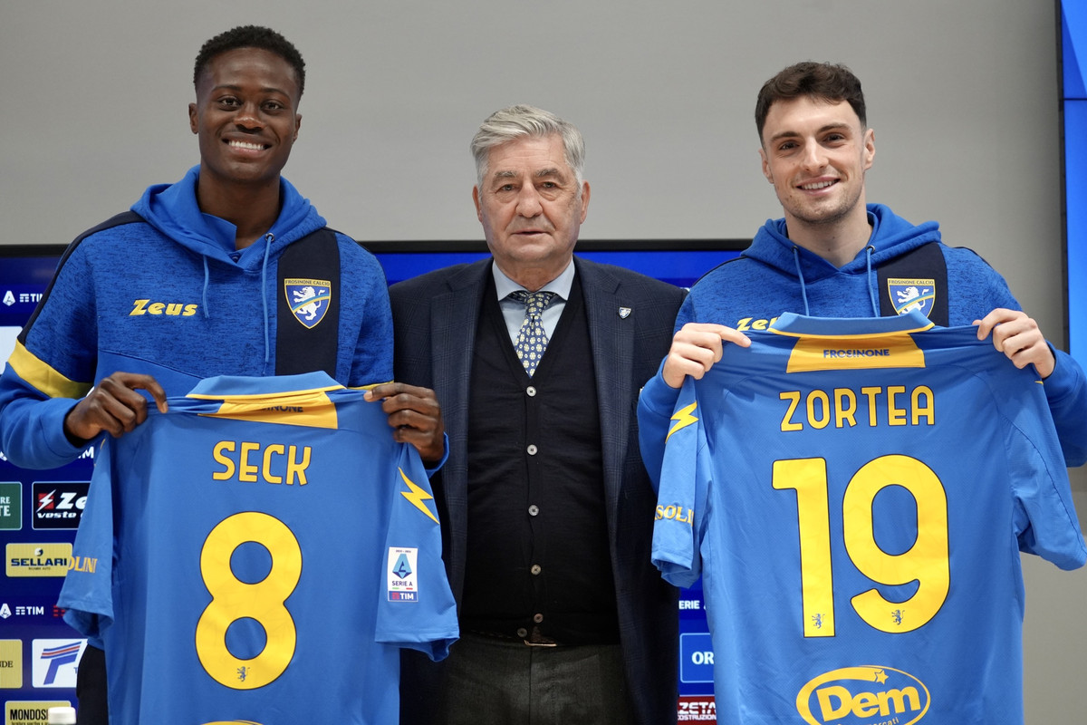 Le immagini della presentazione di Seck e Zortea scattate dell'ufficio stampa del Frosinone calcio.