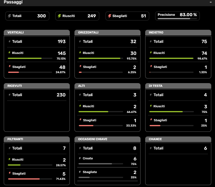 Passaggi Orizzontali (93.75%): È il suo termometro per controllare il ritmo. Perfetto nel cambiare gioco e muovere la palla per aprire gli spazi.