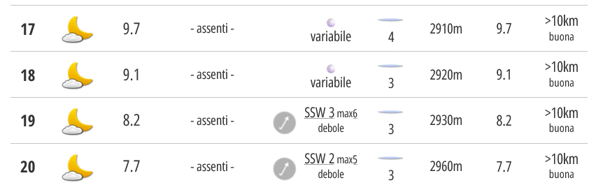 Umidità: Il dato riportato di assenza di precipitazioni e la buona visibilità (oltre i 10 km) indicano un'aria sufficientemente secca, con assenza di nebbia.