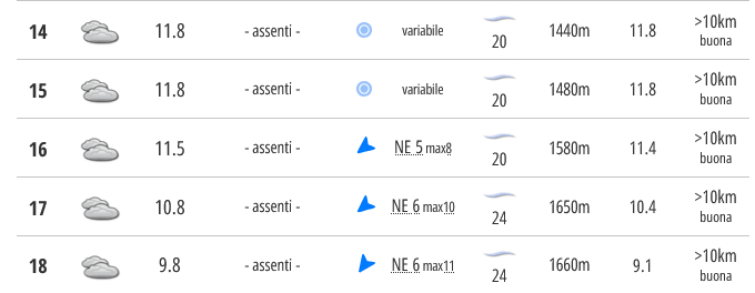 La visibilità è indicata come "buona", superiore ai 10 km per l'intero arco del pomeriggio.
