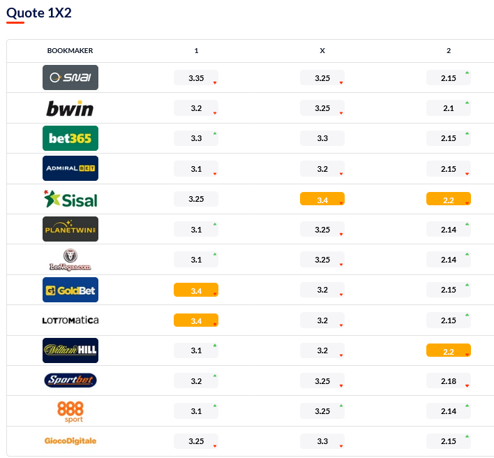 per la sfida di questo pomeriggio tra Reggiana e Frosinone le agenzie di scommesse vedono favoriti al successo gli uomini di Alvini. Le quote infatti indicano la vittoria del Frosinone quotata ad un massimo di 2.20, di contro un eventuale successo dei padroni di casa è pagato anche 3.40. Segno X a 3.25 di media
